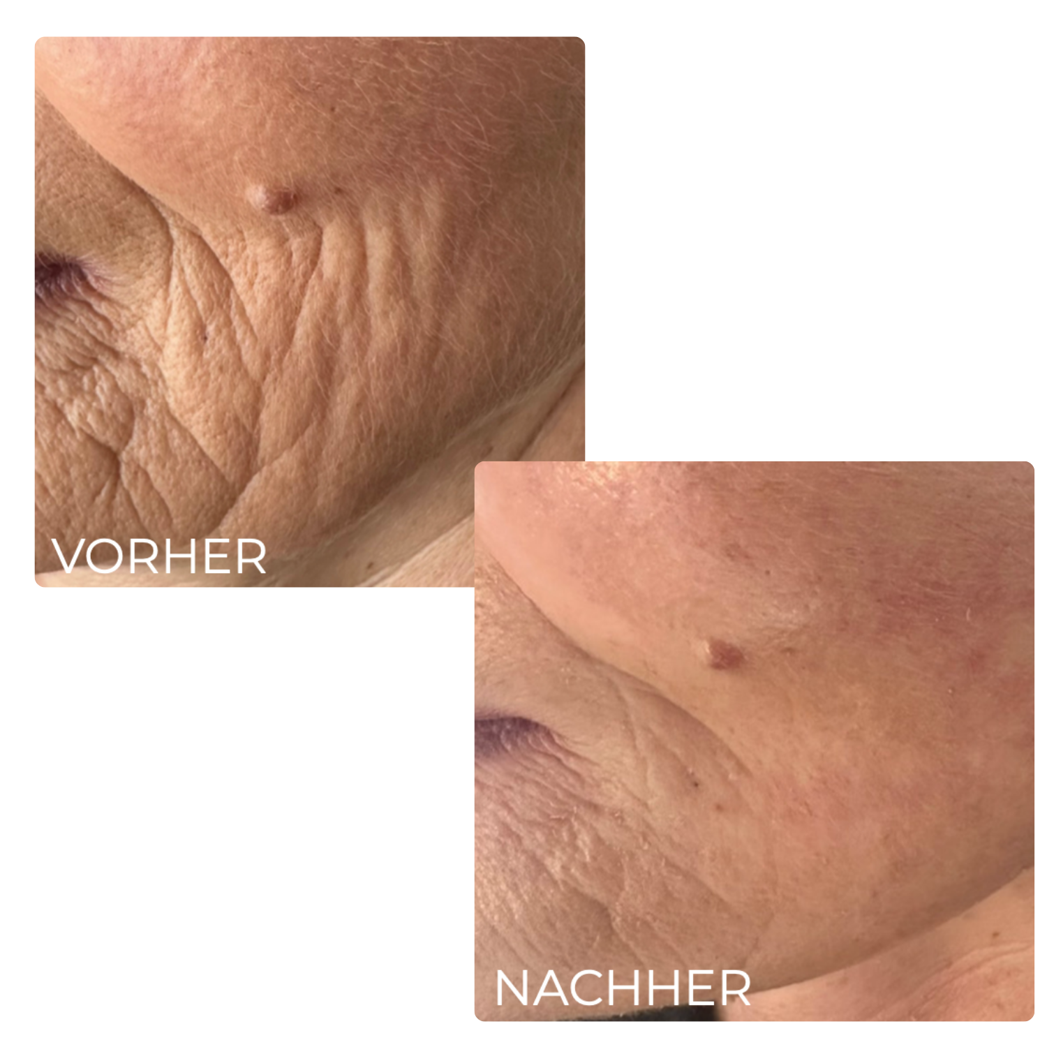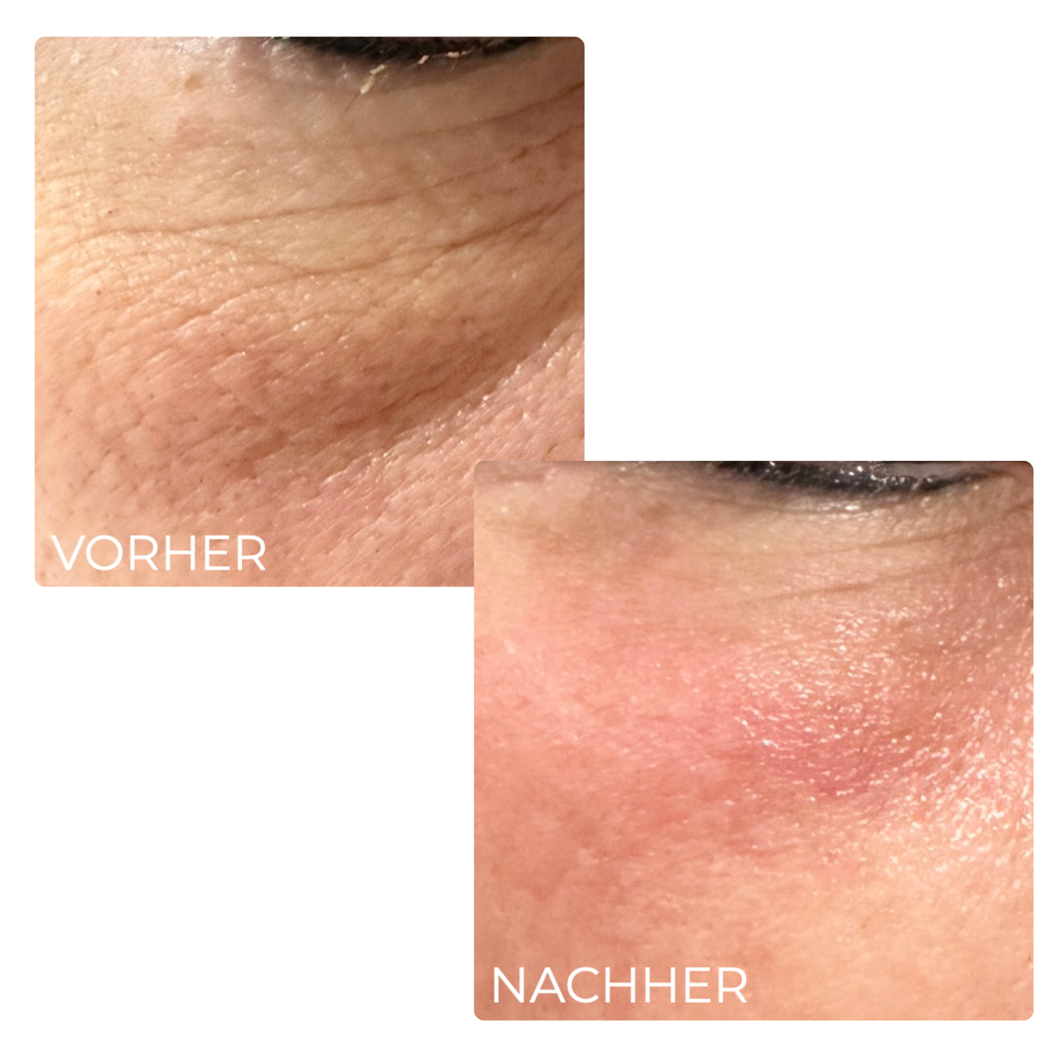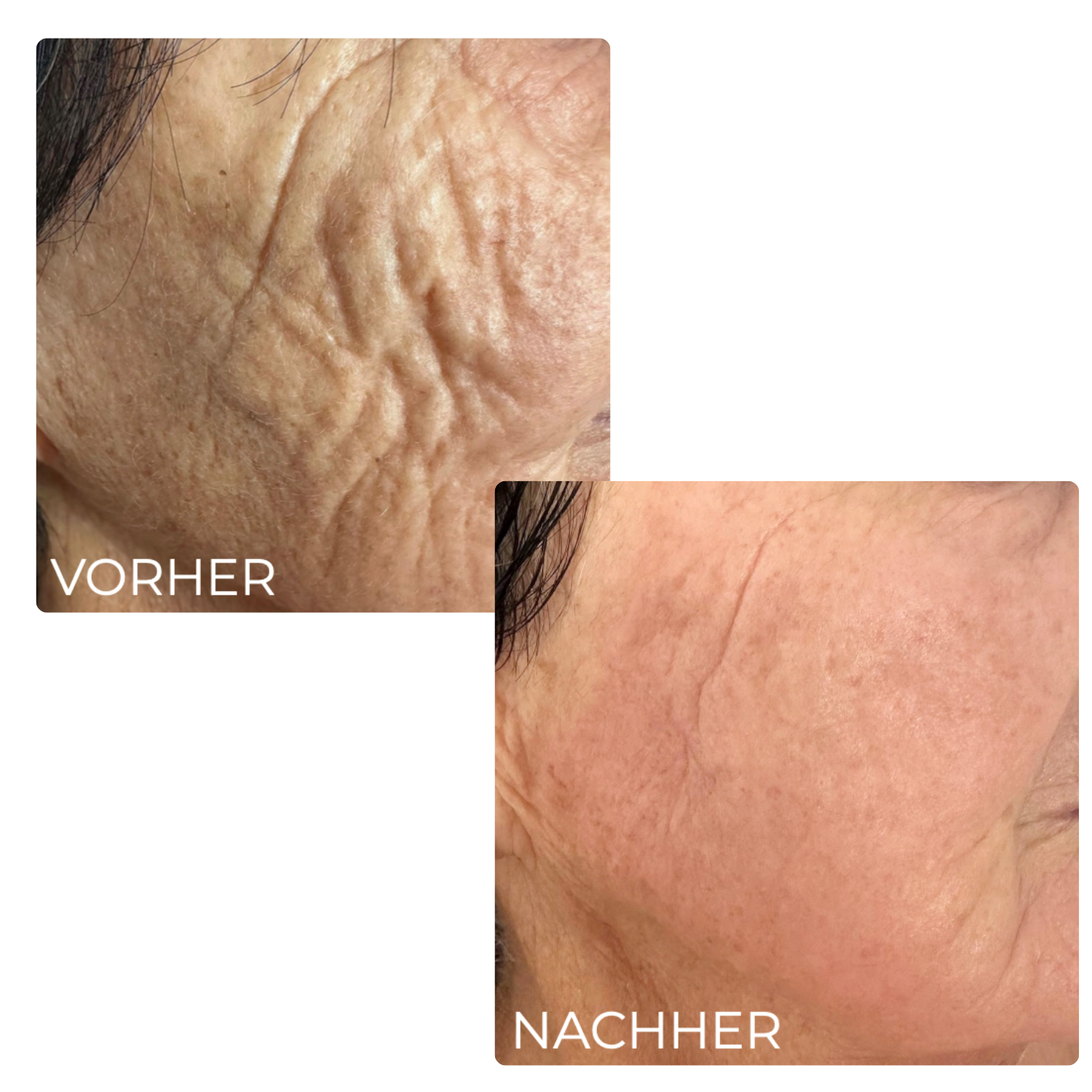 Bereits nach der ersten Behandlung sind sichtbare Verbesserungen erkennbar. Die Haut wirkt straffer, glatter und erfrischter.